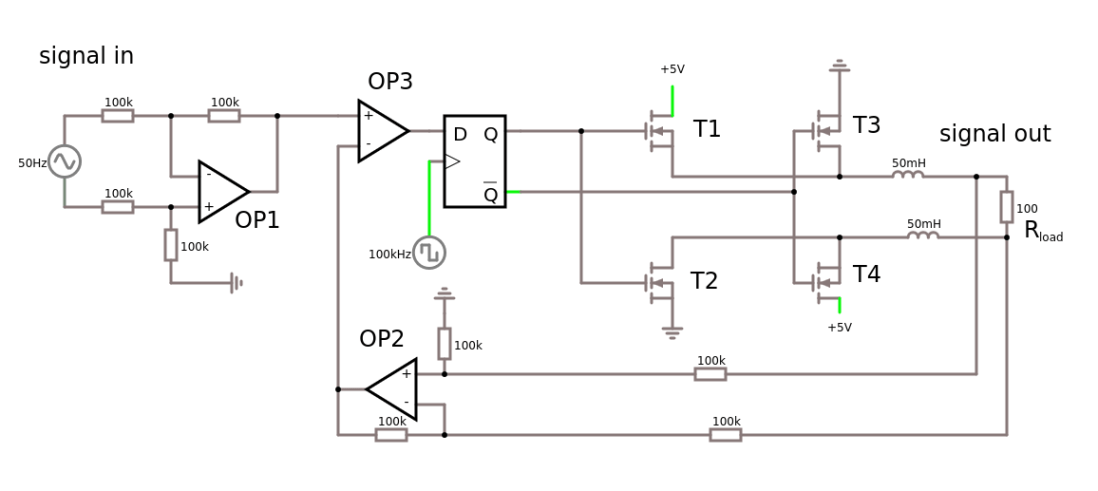 From the producer of A switching amplifier [AM1], A better switching amplifier [AM2] comes part 3: An even better switching amplifier. A quick recap: we're looking into class D switching amplifiers for their high efficiency and power output. The first amplifier sampled the input signal by taking voltage snapshots with a capacitor and measuring the … Continue reading An even better switching amplifier