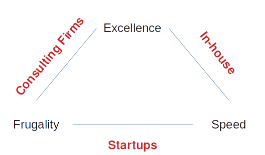 A project is an activity, limited in time and scope, which transforms an organisation from an initial state into a target state. The project management triangle [1] correlates cost, time, scope and quality of a project and emphasizes that project management choices regarding these factors affect results. All interpretations of the project management triangle I'm … Continue reading The triangle of the value-creation industry